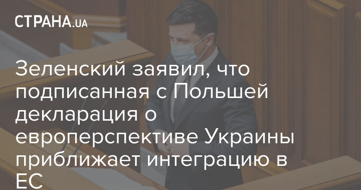 Декларация о европейской перспективе Украины, которую 3 мая подписали президенты Украины и Польши, приближает полноценную интеграцию Украины в Европейский союз. Такое мнение высказал глава государства Владимир Зеленский, сообщается на сайте президента.
