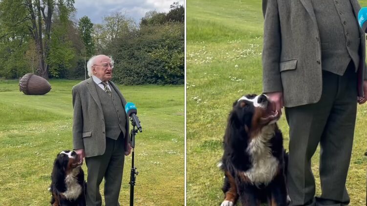 В Ирландии во время выступления лидера страны Майкла Хиггинса произошел курьезный случай. Его собака, сидевшая рядом, требовала внимания и хотела играть. Она кусала президента за руки и совала нос в пиджак.