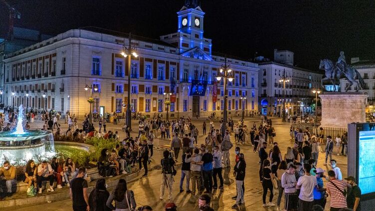 В Мадриде в ночь на воскресенье люди вышли на улицы города, в частности, на центральную площадь Пуэрта-дель-Соль, она была заполнена сотнями горожан, которые принесли с собой алкоголь, веселились и скандировали различные лозунги.