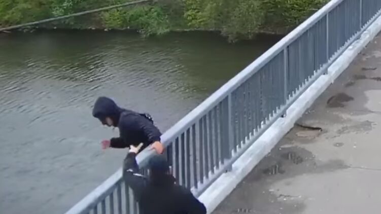 "Уже перекрестился". В Житомире полицейские силой спасли мужчину за секунду до прыжка с моста. Видео