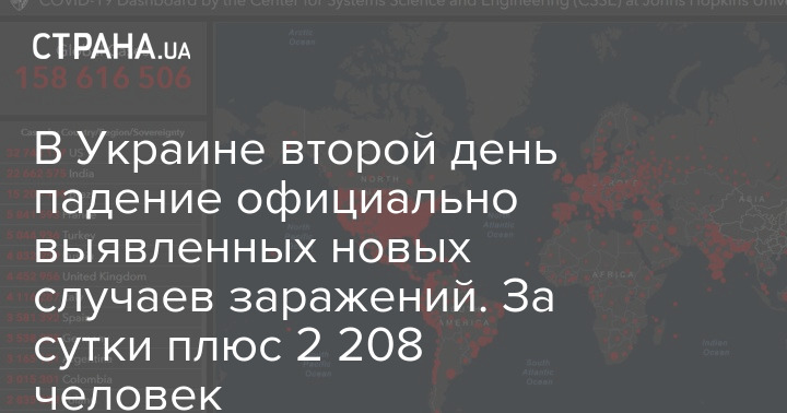 В Украине второй день падение официально выявленных новых случаев заражений. За сутки плюс 2 208 человек