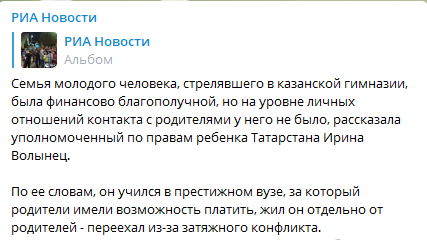 Как передает Телеграм-канал РИА Новости семья Ильназа Галявиева была финансово благополучной, но на уровне личных отношений контакта с родителями у него не было.