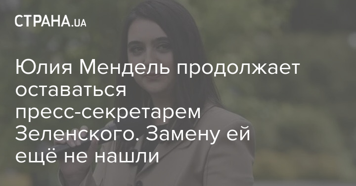 Советник главы Офиса президента Михаил Подоляк в комментарии "Стране" сообщил, что Юлия Мендель продолжает исполнять обязанности пресс-секретаря президента, и замена ей пока ещё не найдена.