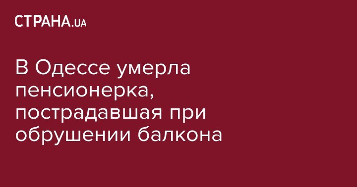 В реанимации одной из больниц Одессы скончалась 65-летняя одесситка, которая находилась на балконе жилого дома во время его обрушения. Об этом сообщает "Думская".