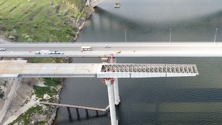 Отложить открытие моста пришлось из-за повреждения плавкрана "Захарий". Фото: zp.ukravtodor.gov.ua
