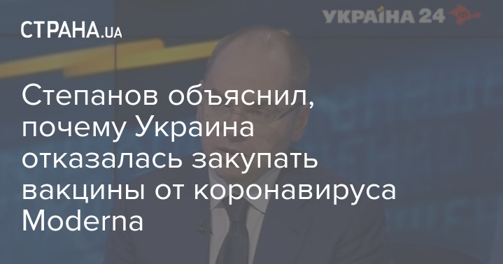 Бывший министр здравоохранения Максим Степанов объяснил, почему Украина не сотрудничает по закупке вакцин от коронавируса с фармкомпанией Moderna. По его словам, на переговорах о покупке вакцины, которые проводил Минздрав, компания предложила неприемлемые сроки поставки и цены.