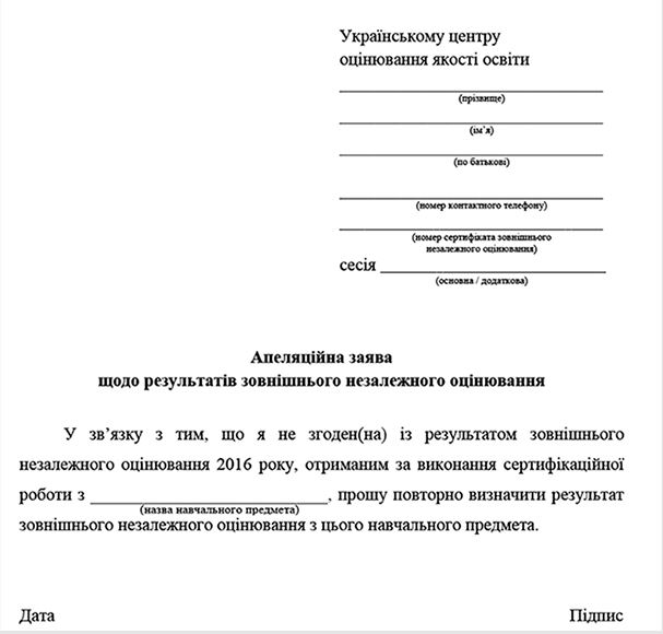Если участник ВНО не согласен с баллами по тестированию, он может подать апелляцию в течение пяти календарных дней со дня объявления результатов. Заявление об апелляции отправляют в Украинский центр оценивания качества образования - заказным письмом (по адресу Киев, 04053, ул. Владимира Винниченко 5, с пометкой "Апелляционная комиссия УЦОКО") или на email: zno_info@testportal.gov.ua.