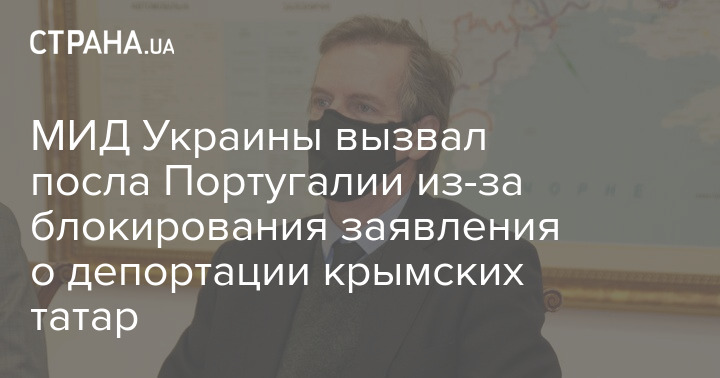 Посла Португалии в Украине Антониу Вашку Алвеш Машаду вызвали в Министерство иностранных дел Украины для обсуждения позиции Португалии в связи с подготовкой заявления ЕС и ОБСЕ о нарушении прав человека во временно оккупированном Крыму.