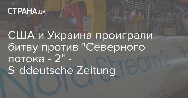 Крупнейшая газета Германии Süddeutsche Zeitung в своей статье пишет, что США и Украина проиграли битву против российского газопровода "Северный поток - 2", который почти построен.