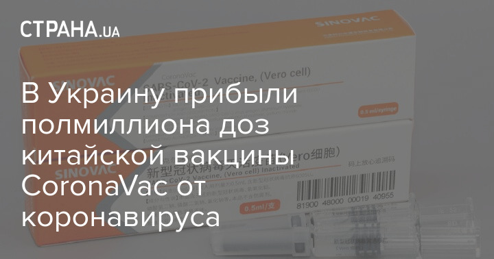 Еще одна партия в 500 тысяч доз вакцины против коронавируса CoronaVac производства китайской компании Sinovac Biotech прибыла в Украину 26 мая.