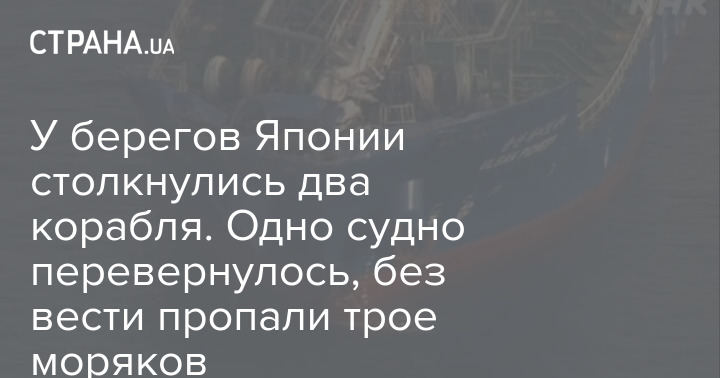 Японское судно перевернулось в результате столкновения. Скриншот: nhk.or.jp