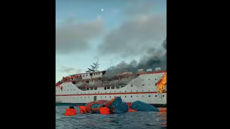 В Индонезии в море загорелся пассажирский паром KM Karya Indah. Фото: youtube.com/PACE BOB