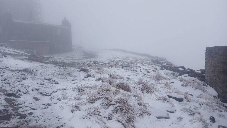 По данным Черногорского горного поисково-спасательного поста, на горе Поп Иван Черногорский в последний день лета пасмурно, падает снег.