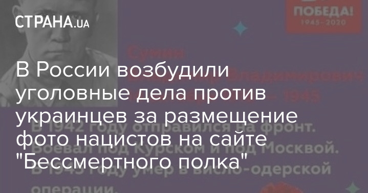 Главное следственное управление Следственного комитета России возбудило уголовные дела в отношении украинцев, а также сторонников Алексея Навального из РФ. Их подозревают по статье 354.1 Уголовного кодекса РФ (реабилитация нацизма) за размещение фото нацистов на сайте "Бессмертного полка".