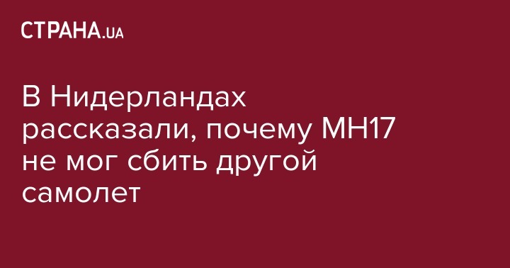 В Нидерландах рассказали, почему МН17 не мог сбить другой самолет