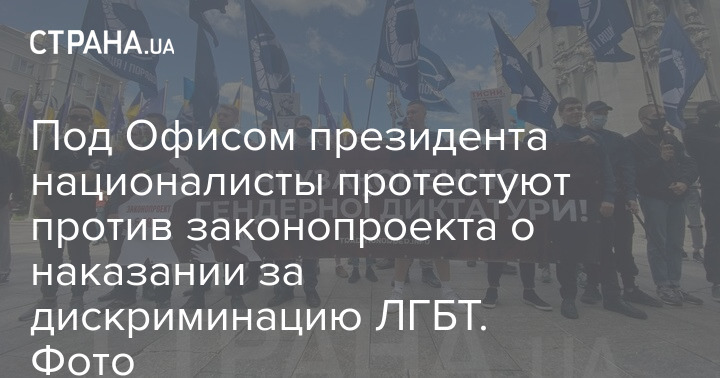 Днем в пятницу, 4 июня, под Офисом президента началась акция протеста националистической организации "Традиция и порядок" против законопроекта о наказании за дискриминацию ЛГБТ и по признаку языка