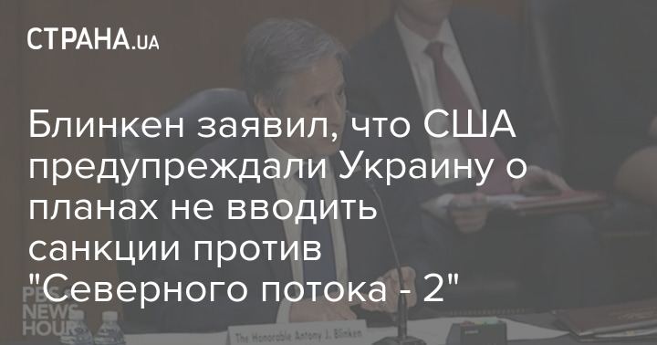 Государственный секретарь США Энтони Блинкен заявил, что Вашингтон предупреждал украинские власти о своих намерениях не вводить санкции против газопровода "Северный поток - 2".