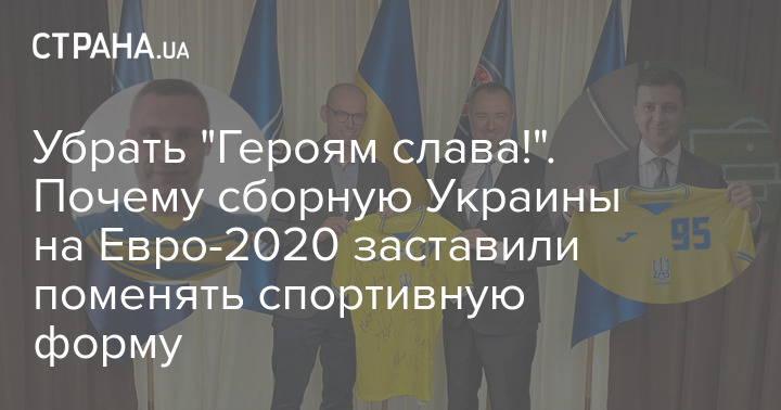 В Украинской ассоциации футбола "Стране" подтвердили, что УЕФА потребовала убрать с формы национальной сборной вторую часть слогана - "Героям слава!". В Киеве не уточнили, будут ли удалять надпись и сказали только, что в данный момент идут переговоры по этому вопросу.