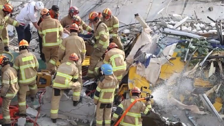 В Южной Корее жилая многоэтажка рухнула на автобусную остановку. Погибли 9 человек. Видео