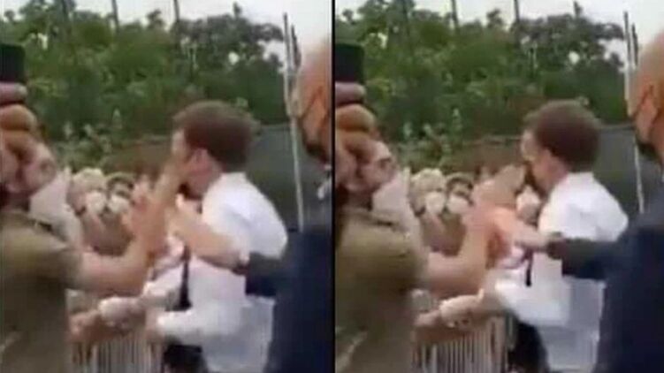 Макрон получил пощечину 8 июня. Скриншот с видео