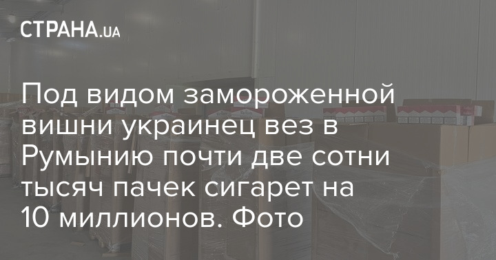 Грузовик "ДАФ" остановили пограничники, таможенники и СБУшники утром 12 июня в пункте пропуска "Порубное". По документам водитель перевозил замороженную вишню. Однако в ходе проведения общего осмотра среди коробок с вишнями было обнаружено большое количество ящиков с табачными изделиями.