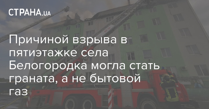 Взрыв в пятиэтажном жилом доме в селе Белогородка Киевской области могла вызвать граната или другое взрывное устройство.