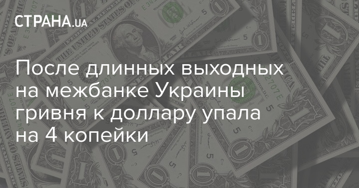 Во вторник, 22 июня, в первый рабочий день недели курс гривни на межбанковском валютном рынке ослабился до 27,33 грн/$1 с 27,29 грн/$1 в предыдущий рабочий день.