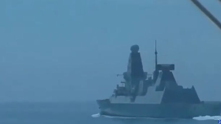 Эсминец прекрасно виден с борта российского корабля. Скриншот из видео