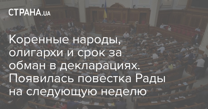 Коренные народы, олигархи и срок за обман в декларациях. Появилась повестка Рады на следующую неделю