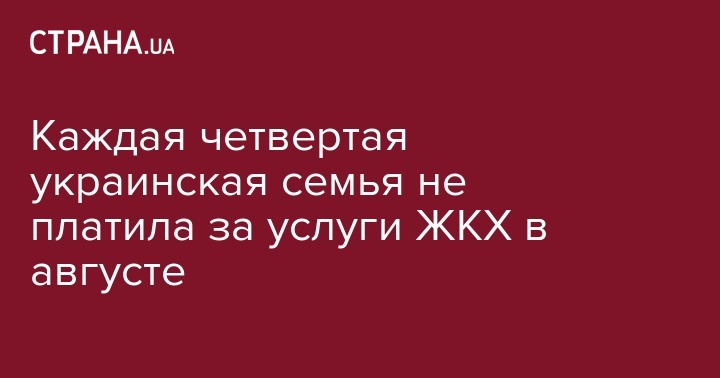В августе 2016 г. населению Украины за потребленные коммунальные услуги было начислено к уплате 3,87 млрд грн,  а было оплачено лишь 2,9 млрд грн, то есть 25,1% населения  вообще не заплатило за услуги.