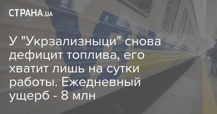 На складах "Укрзализныци" осталось всего 772 тонны дизельного топлива - этого объема хватит всего на сутки работы перевозчика. Ущерб компании вследствие дефицита ресурса составляет 8 миллионов гривен в сутки.
