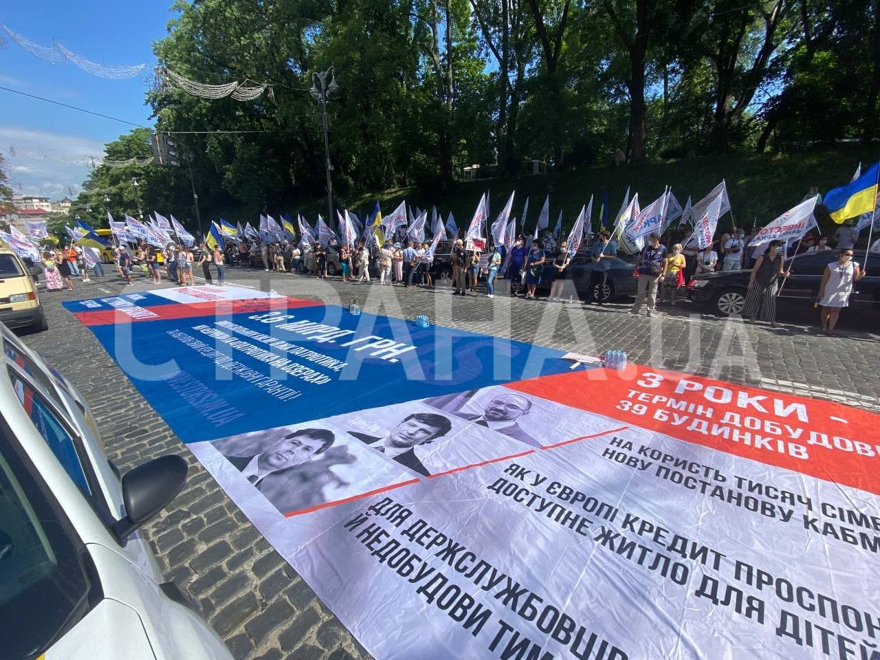 "Третий год замороженное строительство. Для полномасштабного и непрерывного обновления и завершения строительства всех домов в срок до трех лет нужно покрыть дефицит бюджета в размере 3.6 миллиарда гривен. Власть обещала нам диалог но его так и не было",- заявляют участники протеста