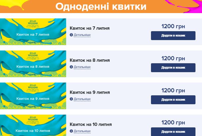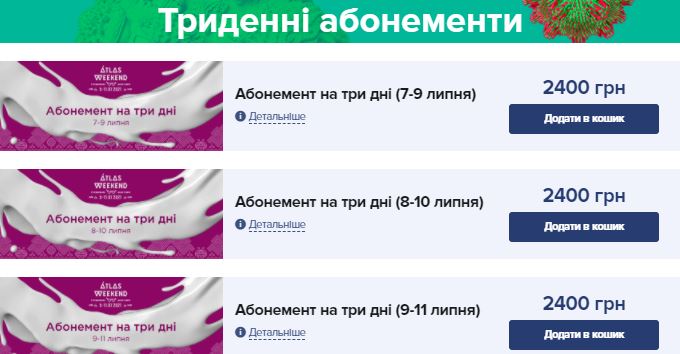 Билеты на три дня, например, с 7 по 9, с 8 по 10 или с 9 по 11 июля, стоят 2 400 гривен.