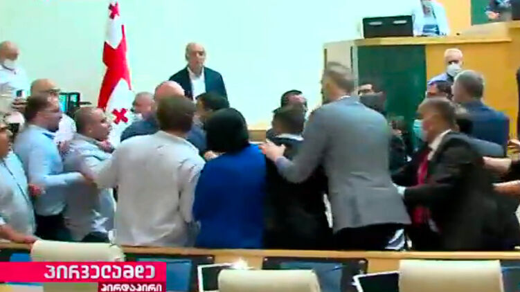 Заседание парламента Грузии было прервано сегодня после того, как врукопашную сошлись депутаты от правящей партии "Грузинская мечта" и оппозиционеры.
