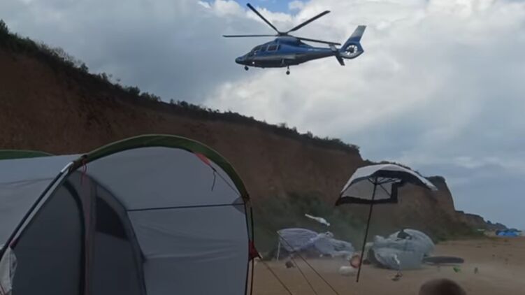 В селе Грибовка Одесской области на пляже во время посадки частного вертолета потоком воздуха снесло палатки отдыхающих, крепления ударили ребенка.