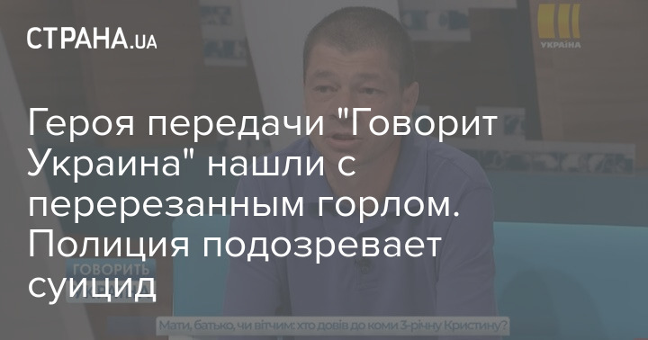 Героя передачи "Говорит Украина" нашли с перерезанным горлом. Полиция подозревает суицид