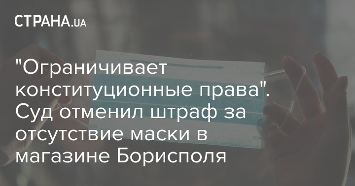 Бориспольский горрайонный суд Киевской области отменил штраф в размере 170 гривен, который правоохранители выписали мужчине за отсутствие у него маски в общественном месте.