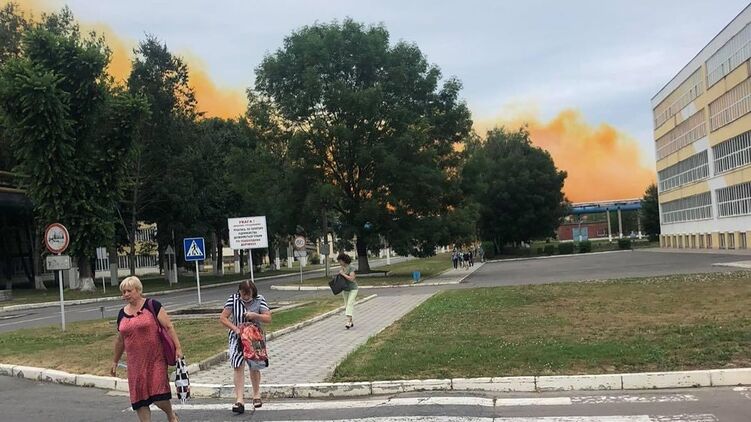 Над городом повисло облако неестественного цвета. Фото: Facebook/ tvoeRV