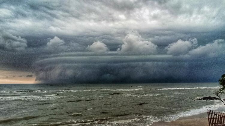 "Не дай бог больше такое увидеть... Гриб разлился в сплошную черноту...При всем этом дул восточный ветер, вдруг подул еще и западный ветер, волны задвигались навстречу друг другу, ударились, образуя водяной столб!", - написала в своем Фейсбуке одна из участниц увиденного Анна Ярославцева. Она же и выложила фото
