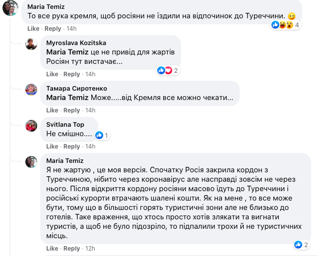 "Это все рука Кремля, чтобы россияне не ездили на отдых в Турцию", - на полном серьезе пишет уроженка Львова Мария Темиз.