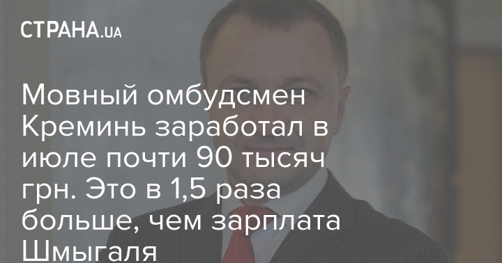 Мовный омбудсмен Креминь заработал в июле почти 90 тысяч грн. Это в 1,5 раза больше, чем зарплата Шмыгаля