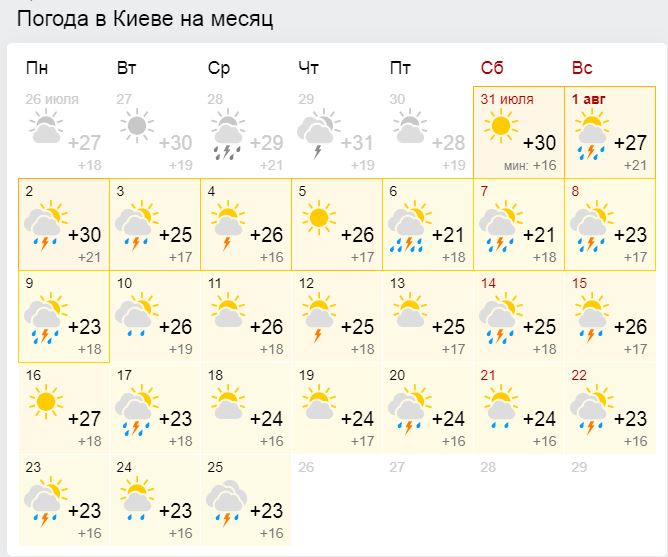 Погода в Киеве в августе