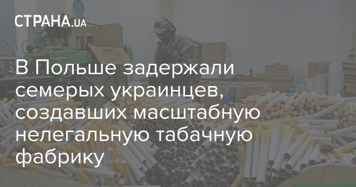 В Польше в Мазовецком воеводстве пограничники разоблачили одну крупную подпольную фабрику по производству сигарет. Правоохранители задержали 16 человек, среди которых семь украинцев.