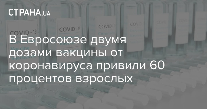 Председатель Европейской комиссии (ЕК) Урсула фон дер Ляйен заявила, что в Евросоюзе вакцинировались двумя дозами препарата от Covid-19 уже 60% всего взрослого населения.