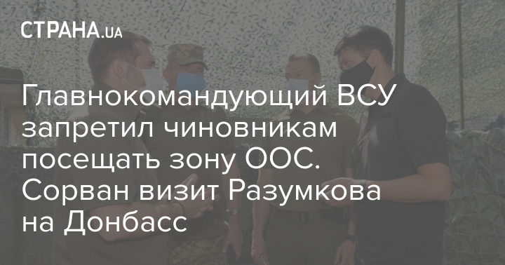 Вечером 2 июля главнокомандующий ВСУ Валерий Залужный сообщил о временном запрете посещения должностными лицами зоны проведения Операции объединенных сил. В связи с этим сорвался визит главы Верховной Рады Украины Дмитрия Разумкова на Донбасс, который должен был состоятся сегодня.