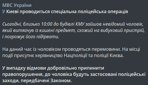 Здание Кабмина пытается захватить неизвестный