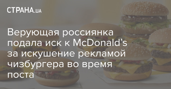 Православная россиянка по имени Ксения Овчинникова обратилась в суд с иском против сети ресторанов McDonald’s. Женщина считает, что сеть нарушила ее права как потребителя, разместив в Великий пост рекламу чизбургера и тем самым искусив ее съесть мяса.