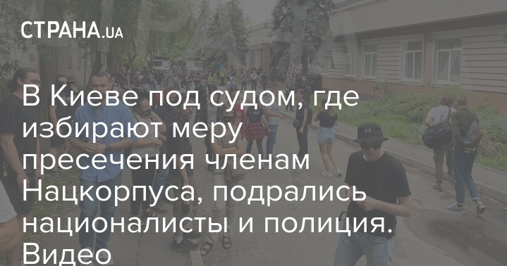 У входа на территорию Шевченковского суда Киева, где сегодня изберут меру пресечения задержанным членам "Нацкорпуса", произошла небольшая потасовка. Это случилось во время проверки личных вещей у протестующих.