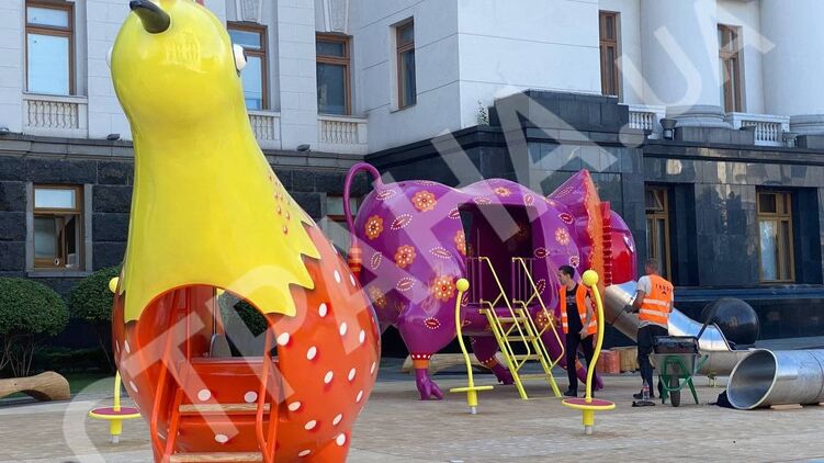В Украине - новая зрада. Под Офисом президента бдительные граждане обнаружили петуха в косоворотке.