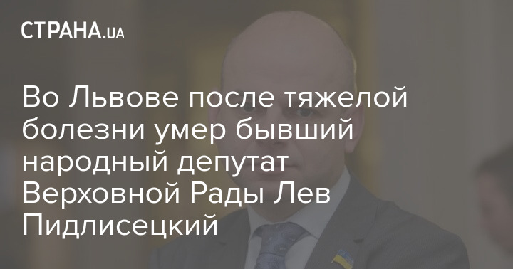 Во вторник, 10 августа, во Львове ушел из жизни предприниматель, политик, бывший депутат Верховной Рады Украины от фракции "Самопомощь" Лев Пидлисецкий. Причиной смерти стала тяжелая болезнь.
